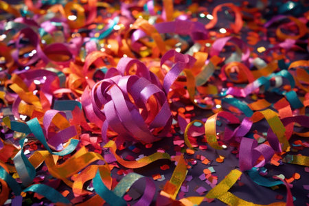 Colorful confetti and ribbons on a background of confetti