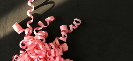 Pink serpentine streamer on black background Party accessory