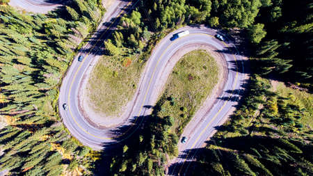 A Curvy mountain road in Arizona shoot from overhead by a drone