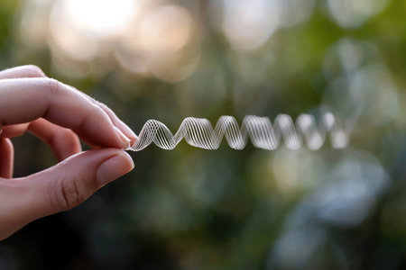 Coiled white wire runs through the picture, green background