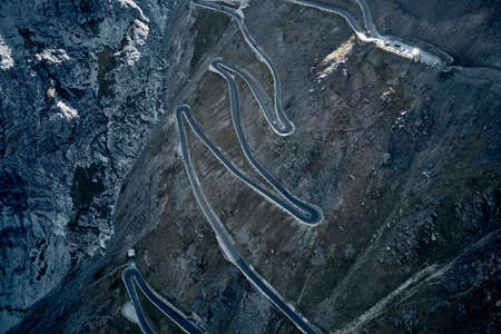 Winding road of the high mountain pass. Drone aerial view.