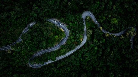Aerial view Beautiful road on the mountain in Chiang Mai, Thailand.