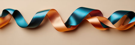 Elegant Teal And Copper Ribbons Arranged In A Swirling Pattern On A Neutral Beige Background