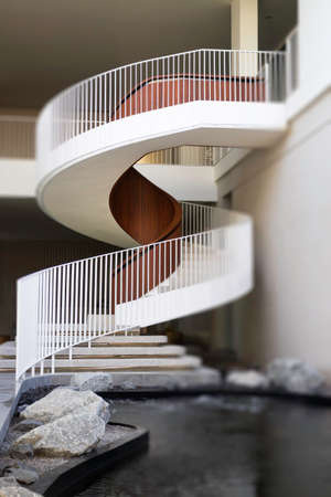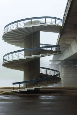 Architectural design of curvilinear stairs. Stair step concrete. abstract background. Stairs rising up. 3d illustration.