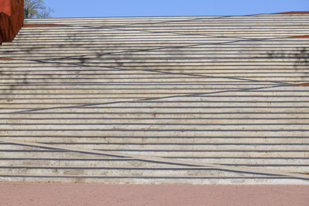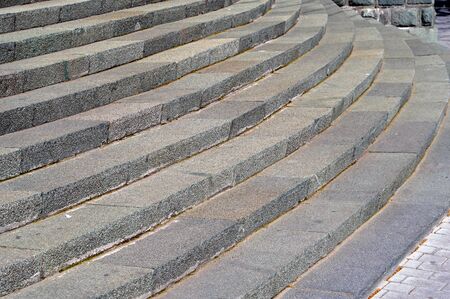 Stone staircase in centre of city. Outdoor stone steps background texture made of multitude slab.