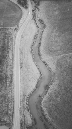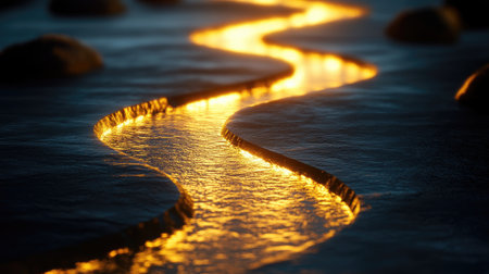 This image captures the serene flow of water with smooth curves and subtle reflections. An abstract representation of tranquility in nature, it evokes calmness.