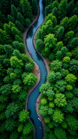 Serene river winding through lush rainforest vibrant greens creating a wild natural scene