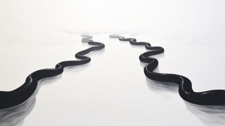 black and blue river painted on clouds in a 3d illustration. this minimalist sculpture-style artwork features a flattened perspective and is created by a cobra, environmental installation artist. set against a white background, the piece incorporates arabesque scroll and minimalistic canine sculptures. ai generated