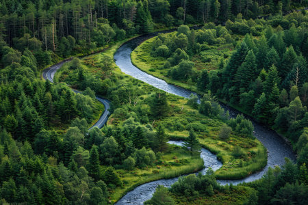 river serenely flows through the heart of a lush green forest, surrounded by majestic trees and vibrant foliage, capturing the essence of minimalism in nature, where simplicity and tranquility reign supreme, evoking a sense of calmness and peaceful coexistence with the environment. ai generated