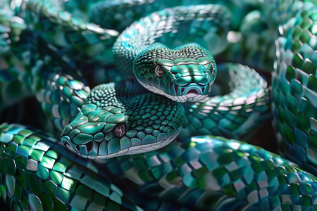 Close-up portrait of the head of a blue rat snake, Blue viper snake closeup face, AI Generated