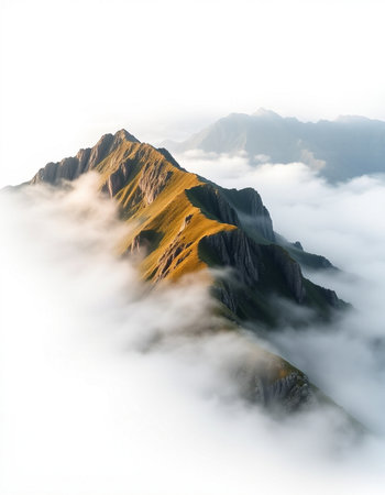 Top View Mulayit Taung golden light of the morning sun and the mist covered on Mount Mulayit,Myanmar