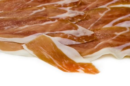 Sliced jamon. Mediterranean delicacy. Horizontal close up image