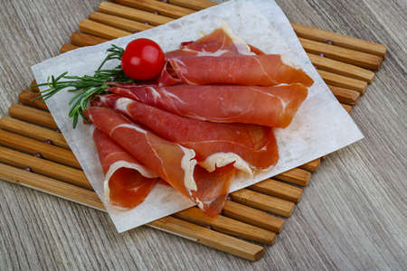 parma ham jamon sliced on a wooden board