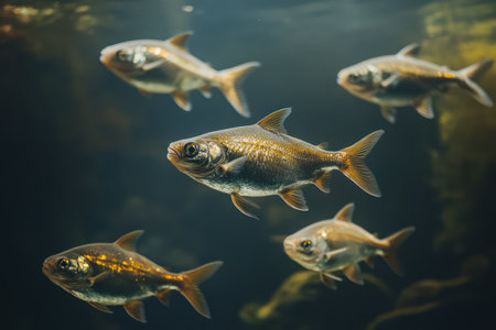 A captivating image of a school of silver fish gracefully swimming in clear water, showcasing the beauty of underwater life and natural habitat.