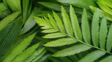 Macro shot of a green fern leaves with very details texture and narrow depth-of-field