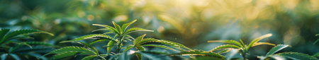 Abstract floral background with juicy green leaves.Copy space for text.Natural organic backdrop.Horizontal banner.