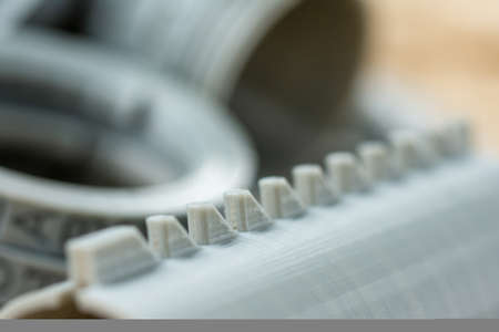 Close-up of plastic parts printed on a 3D printer.