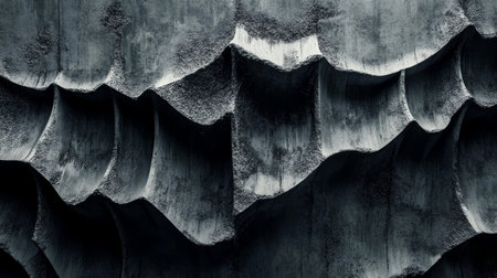 Rough, dark concrete displays an abstract arrangement of layered textures creating depth and interest. The patterns present a modern and industrial aesthetic.