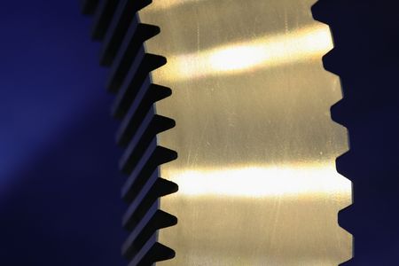 Closeup of connection metal cog wheels with shiny light