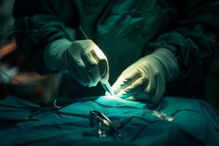 Expert surgeon performing precise surgical procedure in sterile operating room setting