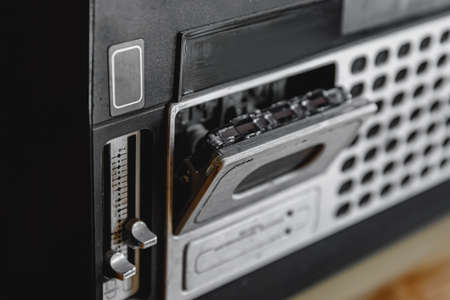 Vintage electronic circuit boards with radio parts and chips, close-up, macro photography