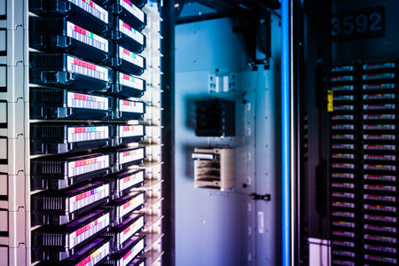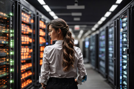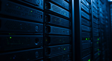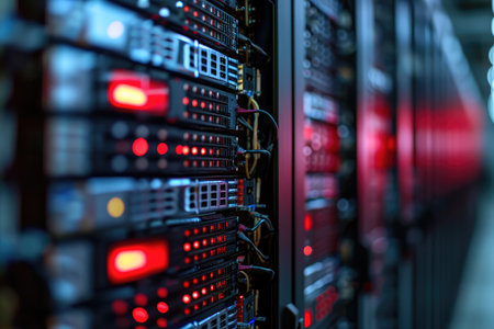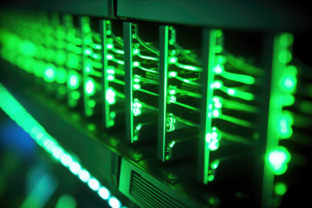 Sleek server racks with glowing LEDs showcase advanced technology and organization in a modern data center.