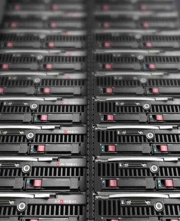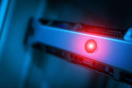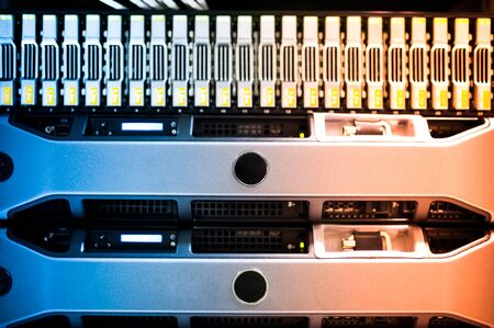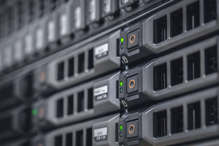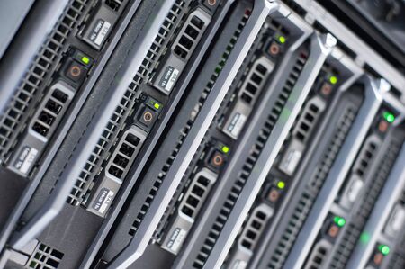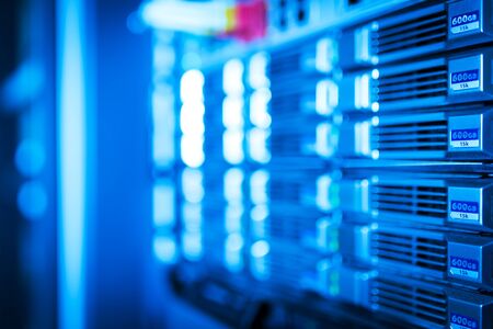 The server room tells the computer server that is working continuously. Convey the power and progress