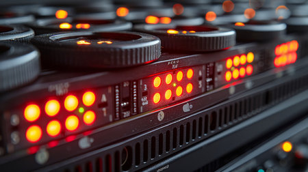 A photograph depicting a row of servers neatly lined up in a server room, ready to handle data processing and storage, Conceptual backdrop of a network switch in operation, AI Generated
