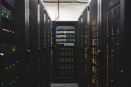 Sleek server racks with glowing LEDs showcase advanced technology and organization in a modern data center.
