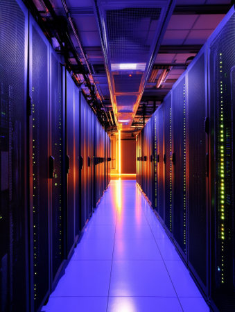 Sleek server racks with glowing LEDs showcase advanced technology and organization in a modern data center.