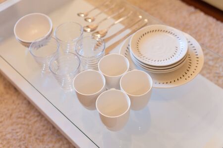 Set of white dishes on the table