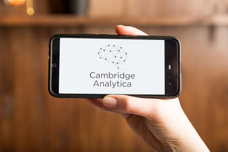 Tula Russia 16.01.20 Cambridge Analytica on the phone display isolated.