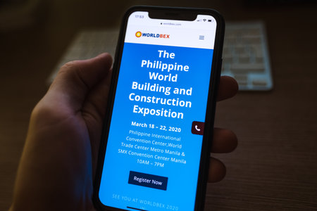 PRAGUE, CZECH REPUBLIC - DECEMBER 19 2019: WeWork commercial real estate company app on phone screen with internet page in background on December 19, 2019 in Prague, Czech Republic.