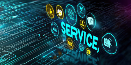 A close-up of a keyboard highlighting the Service button, symbolizing support and assistance in a modern office environment. Ideal for technology concepts.