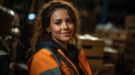 Smiling woman labor worker in industry factory logistic shipping warehouse