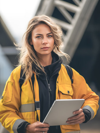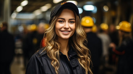 Portrait of woman engineer wearing protective workwear in work.