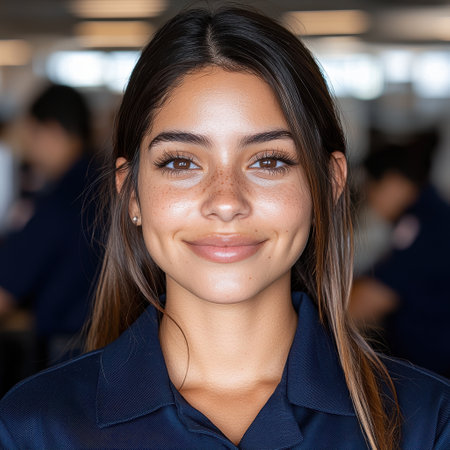 Portrait of a young female customer service representative smiling at the camera
