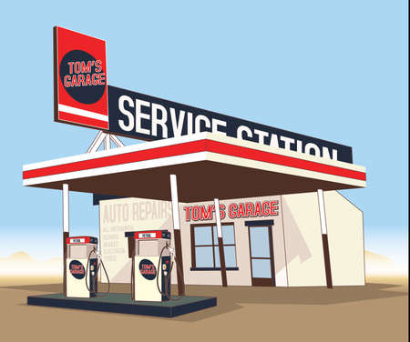 Abandoned gas station in the desert of California, USA. Vintage filter applied.