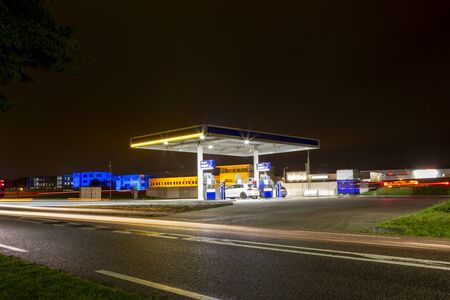 Evening at a selfservice gas station at the A44 highway in Sassenheim the Netherlands.