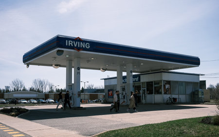 Montreal, Canada - August 12, 2025: Petro-Canada gas station, red and white design with maple leaf logo