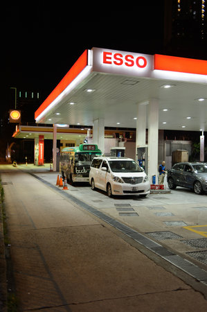 HONG KONG - APRIL 15, 2015: Esso fuel station at evening. Esso is an international trade name for ExxonMobil and its related companies.