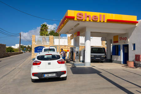 Folegandros, Greece - September 25, 2020: Shell gas station, multinational oil and gas company in Chora town on Folegandros island.