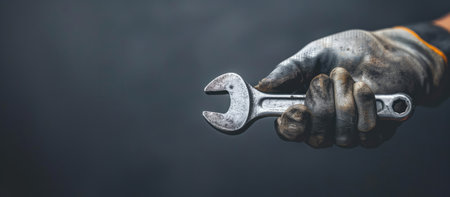 Hand holding wrench as symbol of labor day greeting card professional photography