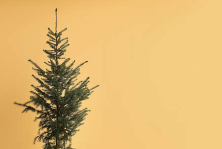 Christmas fir tree branches Background. Christmas pine tree wallpaper. Copy space.