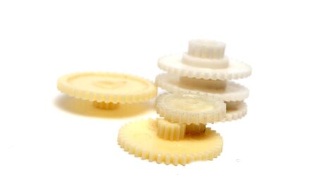 microelectronic servomotor on white background. component for control of robots and radio-controlled toys