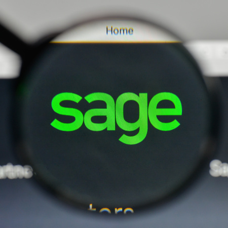 Milan, Italy - November 1, 2017: Sage Group logo on the website homepage.