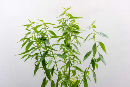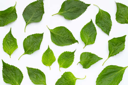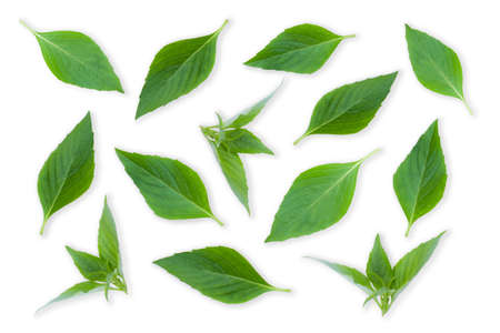 Tree Basil leaves (Ocimum gratissimum) on white background.