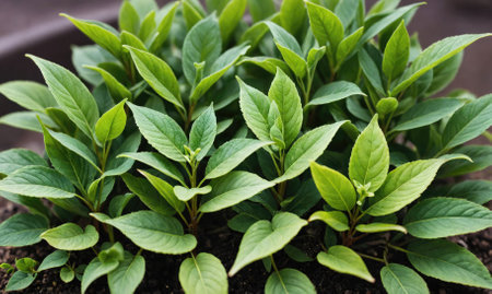 Green leaves of a young plant growing in soil