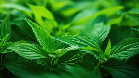 Full frame of green peppermint leaves. herbal texture.
