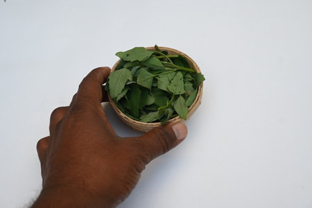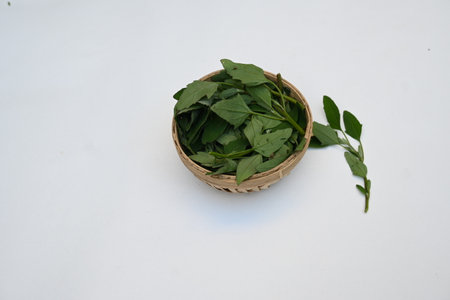 Fresh Kariyat, Andrographis paniculata leaves on white background top view